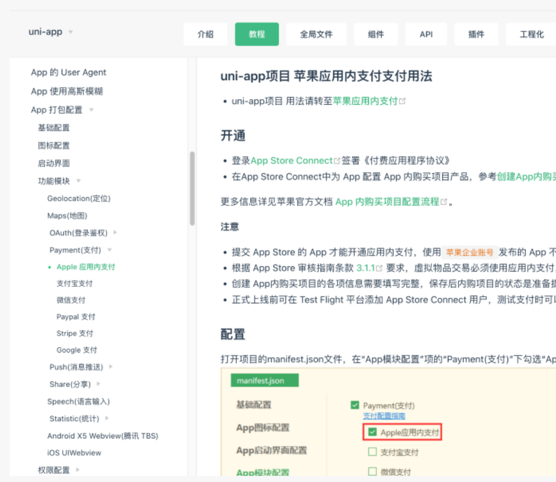 - 启用内购:在“模块配置”中,找到“Payment(支付)”模块,勾选“Apple In-App Purchase(苹果内购)”,确保该模块被启用。