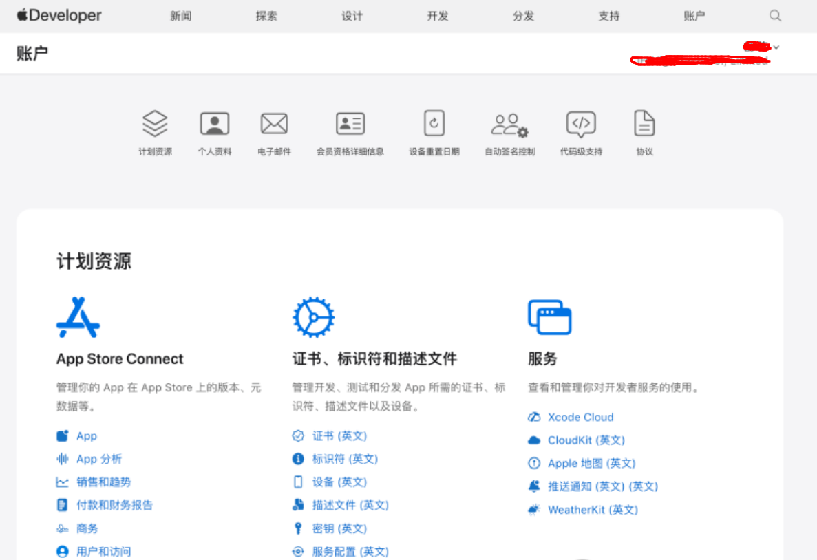 访问苹果开发者官网(https://developer.apple.com/account/),使用已付费的开发者账号登录,进入“Certificates, Identifiers & Profiles”(证书、标识和配置文件)页面。